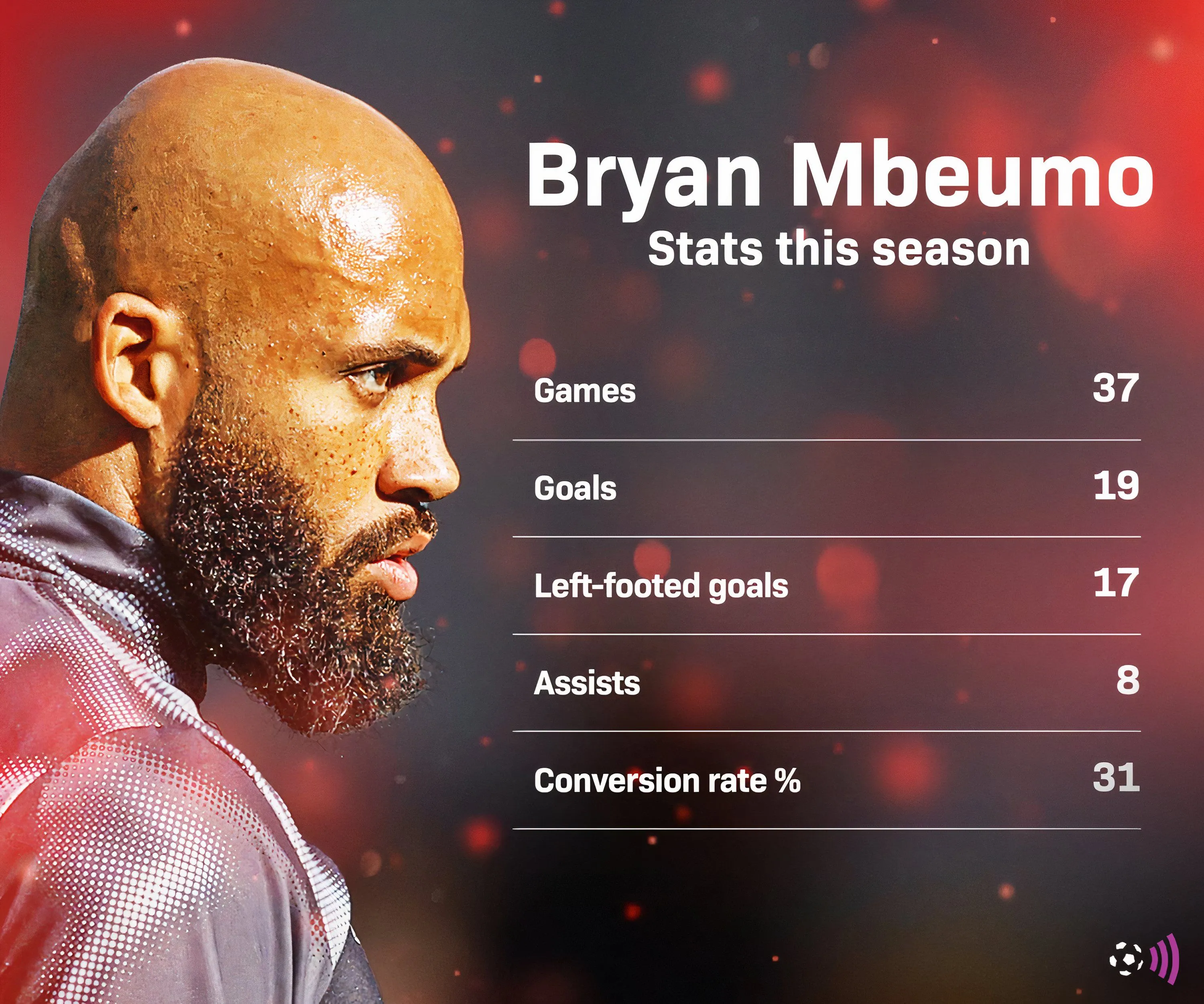 Mbeumo đã có phong độ đáng chú ý trong mùa giải này và xếp thứ 5 trong cuộc đua Vua phá lưới Premier League, đã ghi được 19 bàn thắng. Tính trên mọi đấu trường, anh cũng đã có 9 pha kiến tạo.